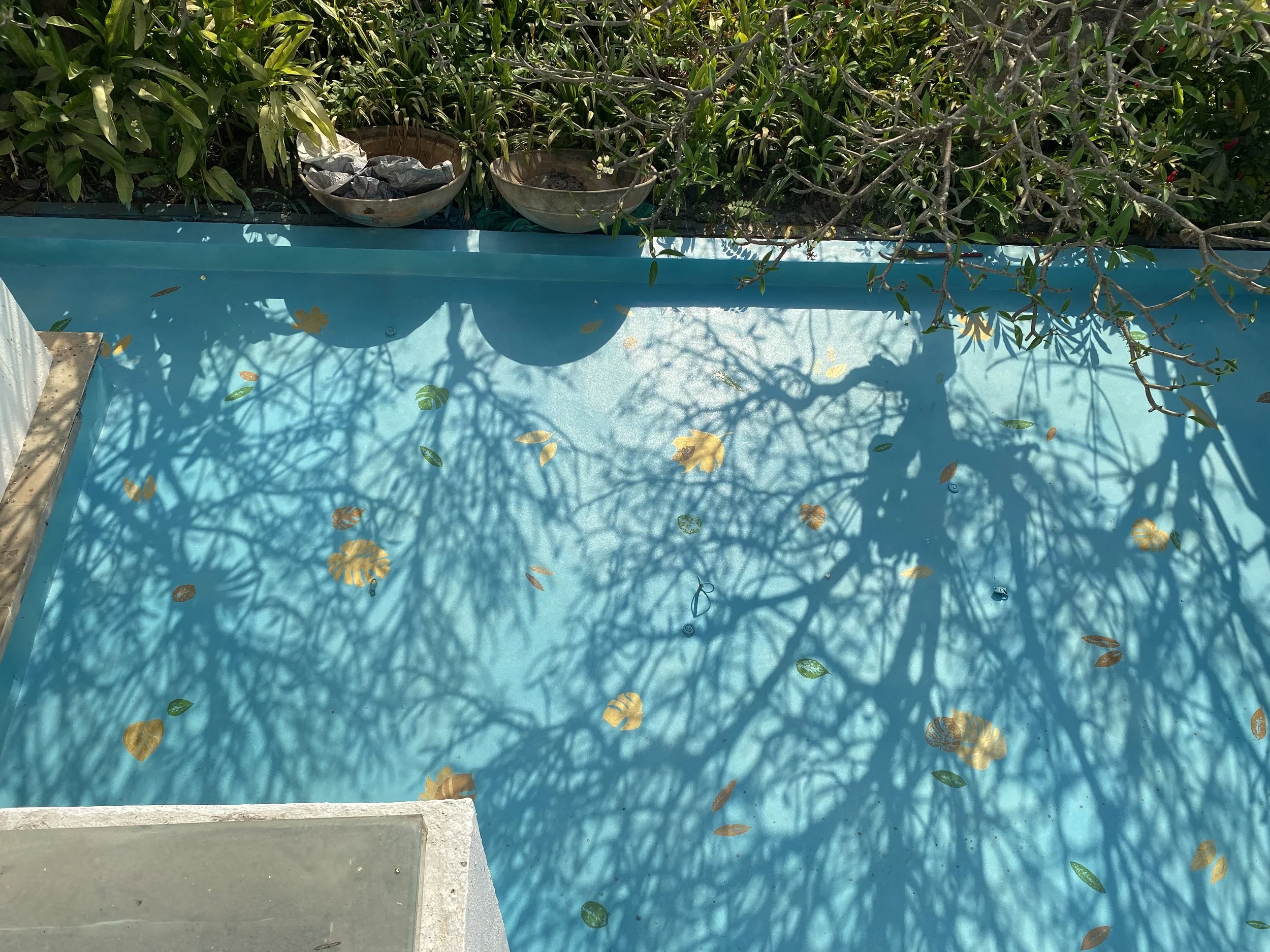 Design a made-to-order flooring concept for the waterbody zone of a private farmhouse in Alibaug.